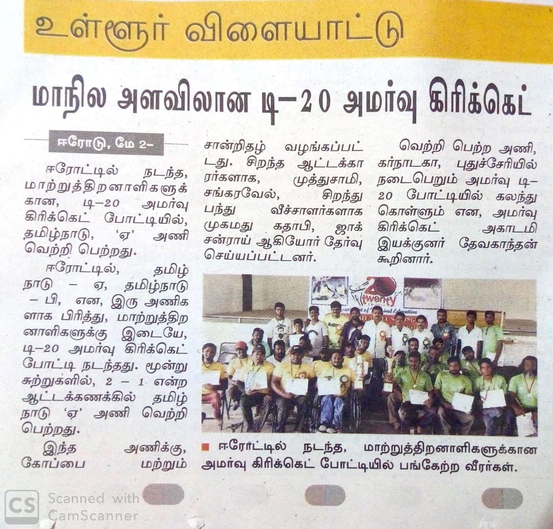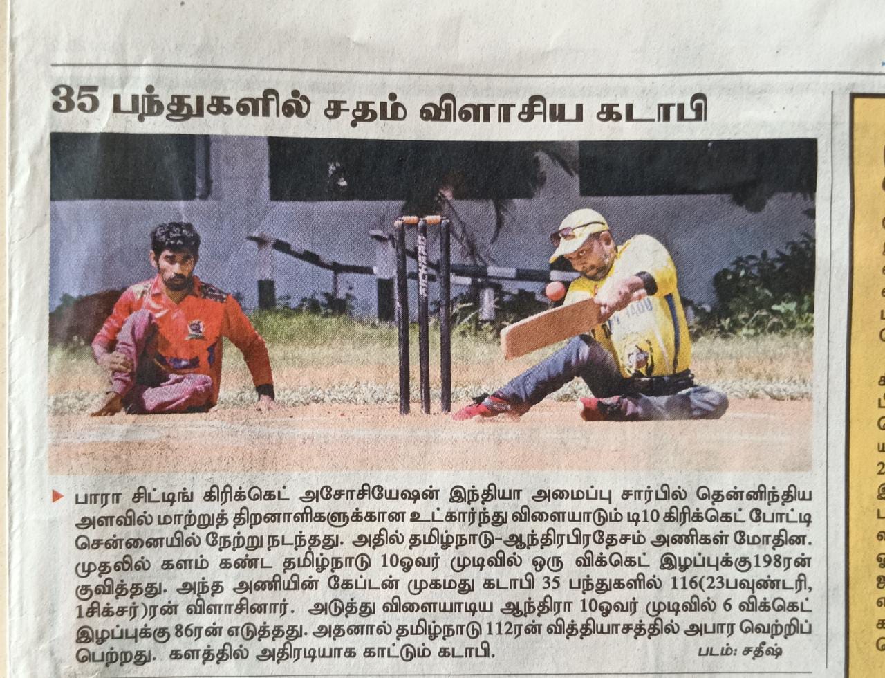 4 th NATIONAL LEVEL SITTING CRICKET CHAMPIONSHIP -2025. PUBLISHED ON NEWS PAPERS