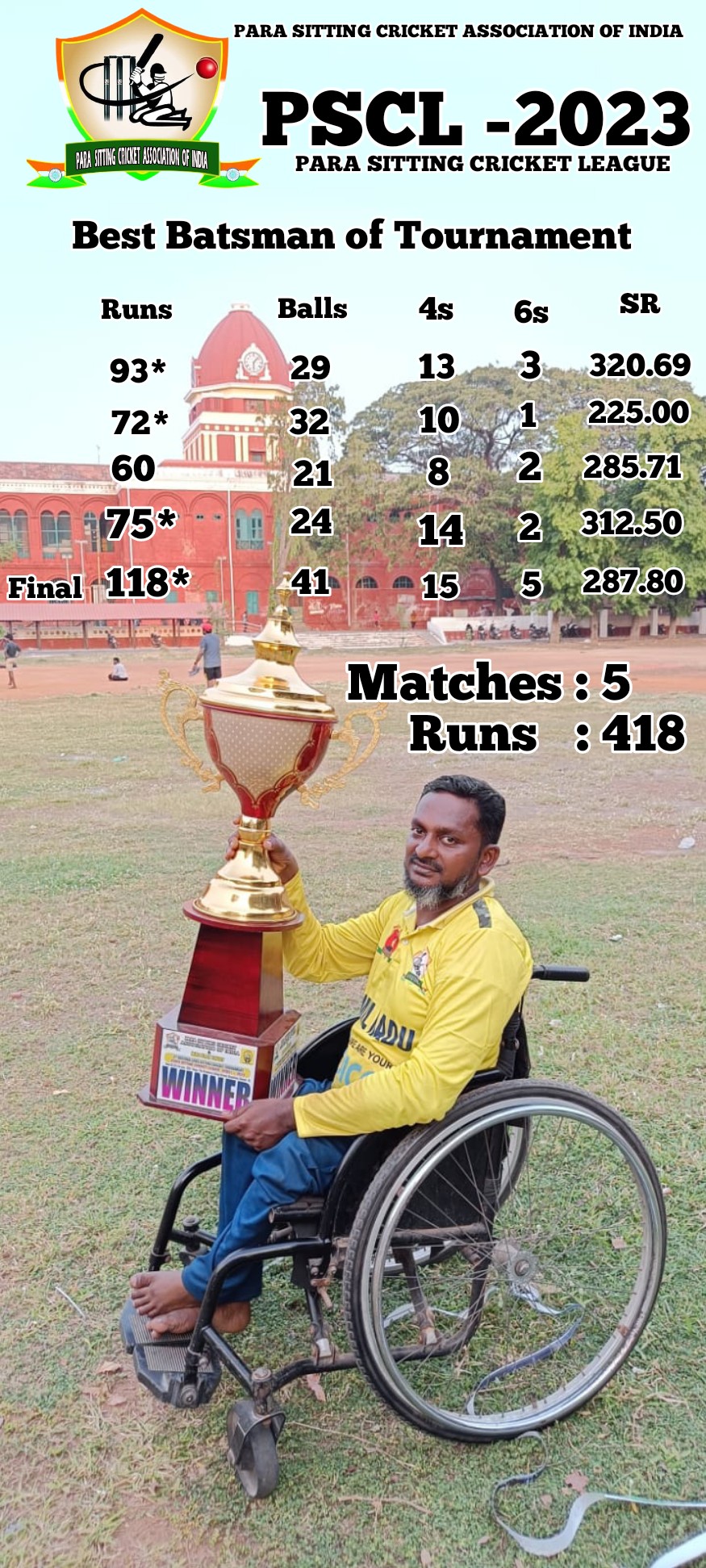 Congratulations to Team Tamil Nadu on winning the 3rd National Level Sitting Cricket Tournament 2024.
