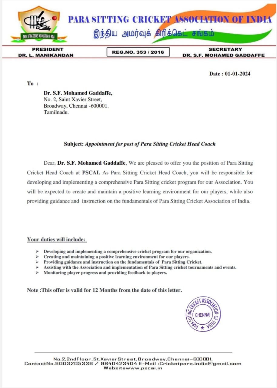 20/04/2022 மாற்றுத் திறனாளிகள் நல இயக்குநர் திரு. ஜானி டாம் வர்ஜீஸ் இ.ஆ.ப அவர்களிடம் வாழ்த்துக்களை பெற்றோம்.உடன் இந்திய அமர்வுக் கிரிக்கெட் சங்க நிர்வாகிகள்