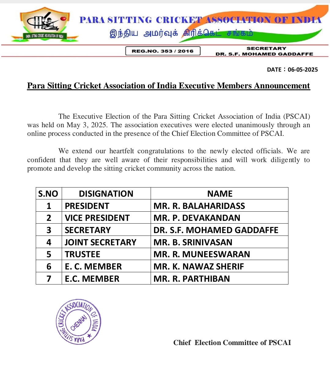4 th NATIONAL LEVEL SITTING CRICKET CHAMPIONSHIP -2025 INVITATION